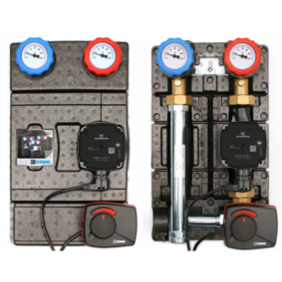 Grupa pompowa w izolacji z zaworem mieszającym i siłownikiem, pompa Grundfos/Wilo