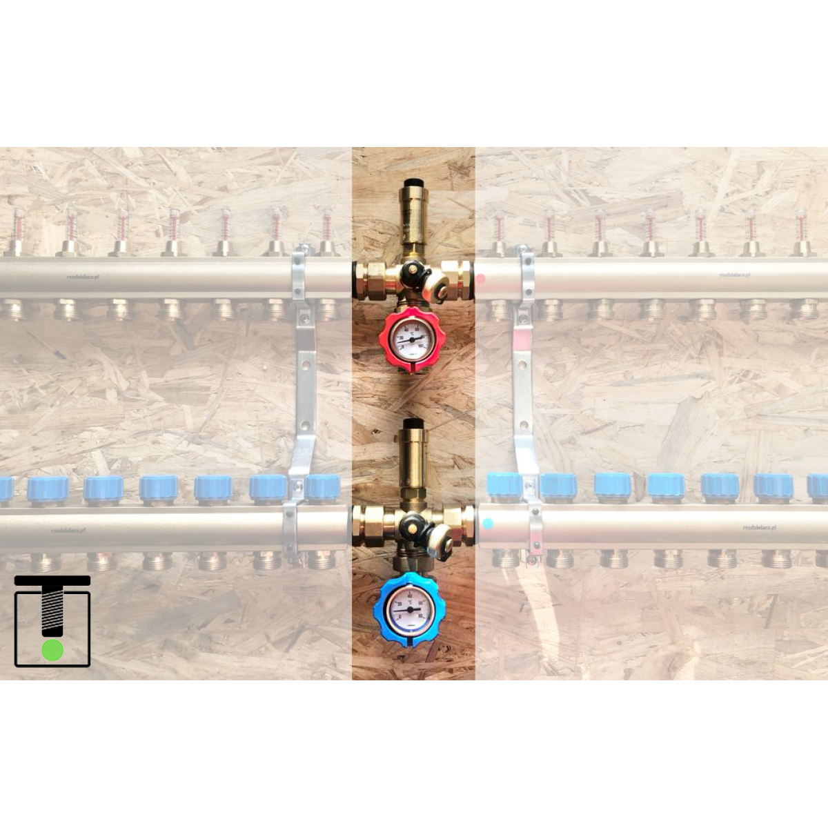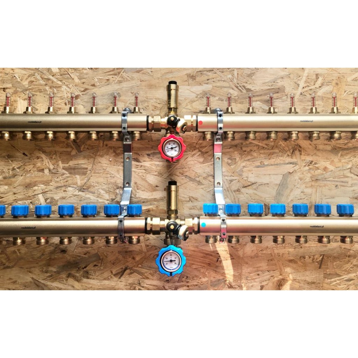 Rozdzielacz mosiężny do ogrzewania podłogowego z wkładkami termostatycznymi i przepływomierzami ..