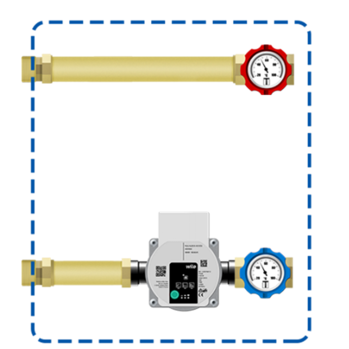 Grupa ładowania sprzęgła z zaworami odcinającymi z termometrami i zaworem zwrotnym HAW002 (POMPA WILO PARA 15/60) / HAG002 (POMPA GRUNDFOS UPM 3 AUTO L 15/70)